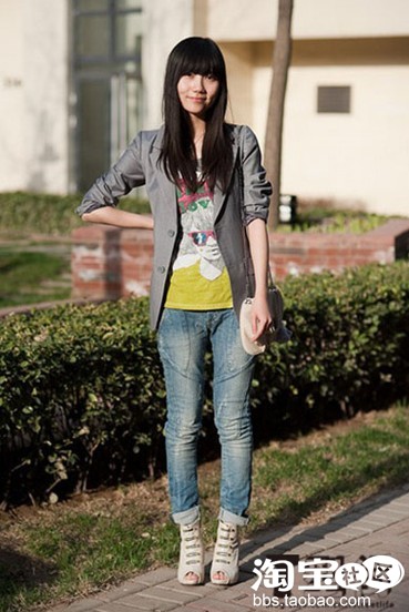随意又有个性 好看 卷起裤管穿上高跟鞋