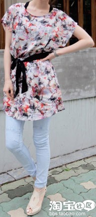 在碎花和蕾丝纯粹的萝莉王国里 漂亮另类的图案碎花 尤其是腰间系上一条黑色丝巾腰带,立刻就有了完全不同的感觉,这样的搭配,怎能不吸引人们的眼球呢?
