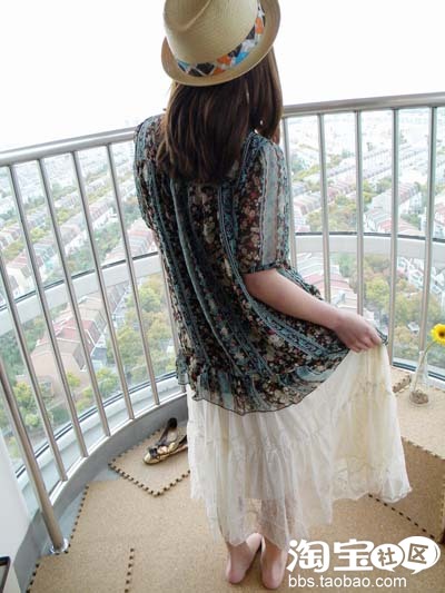 碎花裙+雪纺外衣