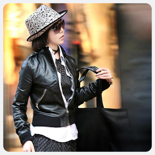 时尚之都上海◆橡菲韩版机车皮衣纯黑显瘦短皮衣夹克 货号F16