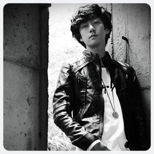 至帅尊!上海橡菲斜拉链男款休闲黑色机车皮衣 货号F88