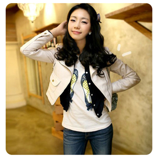 时尚之都上海◆橡菲正品韩版风休闲米白色小皮衣短外套! F31