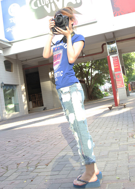 12. 夏日里,T恤是衣柜里的必备单品,搭配街头风的破旧洗水牛仔裤,很拉风,很时尚。