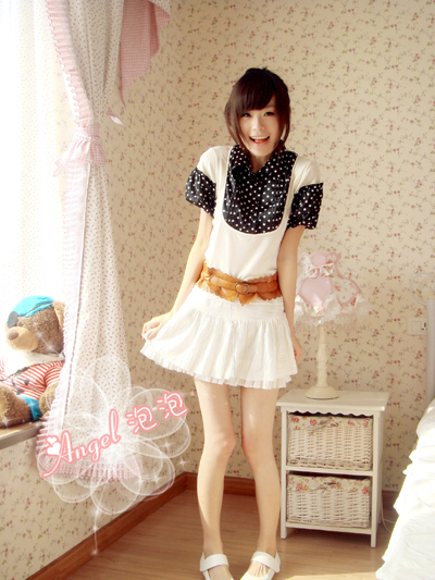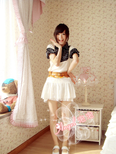 泡搭配的白裙 因为yy也是白底 所以可以搭配腰带 插色~ 应该还行