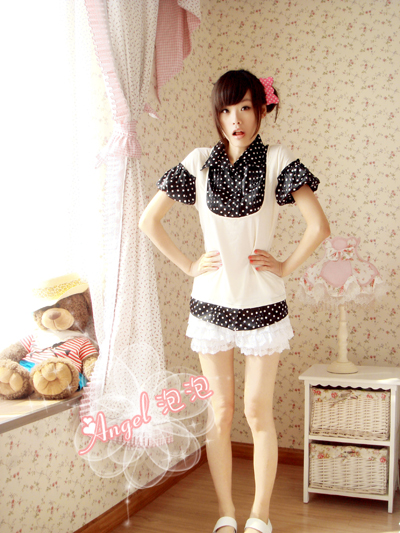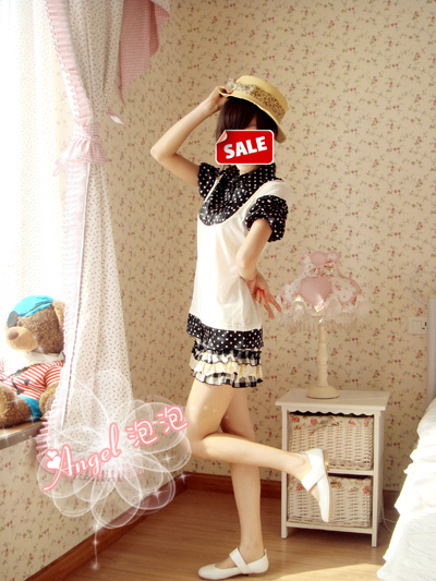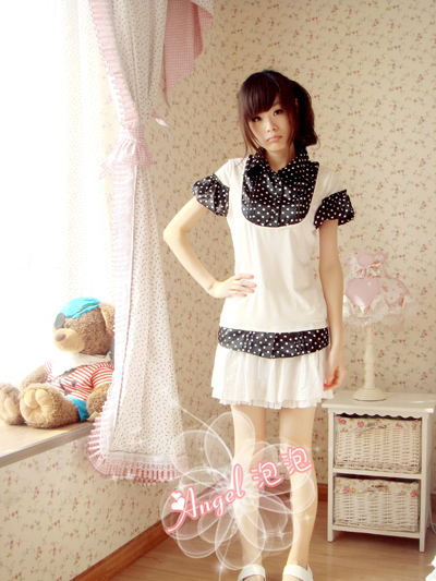 不建议搭配长裙和长裤~因为白色圆点搭配短装会比较有活力~