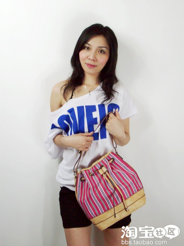 宽肩设计大字母TEE+zara黑色百搭西装短裤+玫红色竖纹斯文水桶包包/蓝色休闲单肩包