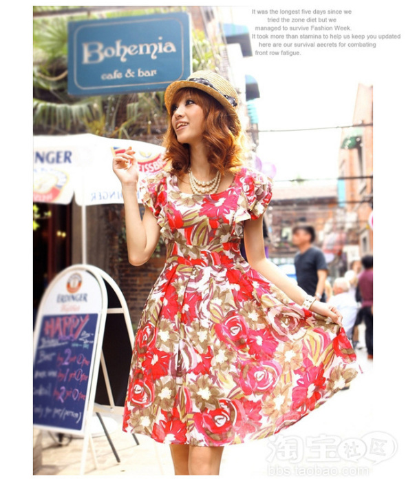 夏日风情啊!艳丽的颜色绝不会让你淹没在人海中。是今年韩国超级流行的大红印花哦!