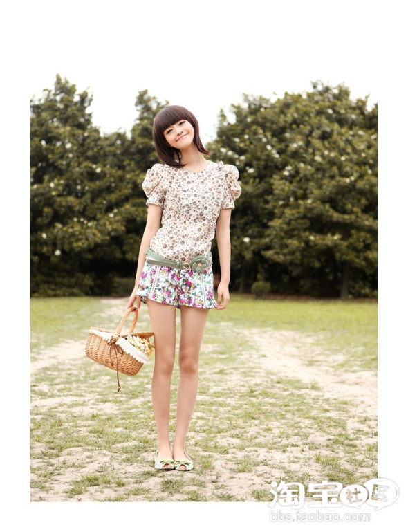 O(∩_∩)O~碎花木耳边的衬衫!很流行哦!也是泡泡袖!因为泡泡袖比较公主~~女人天生是公主