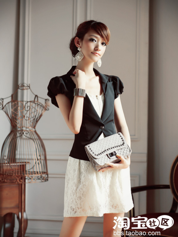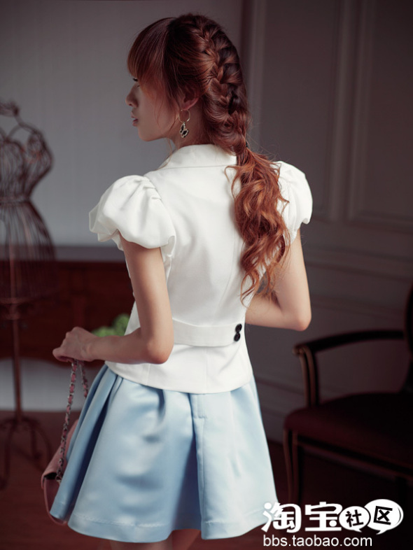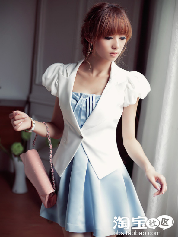 职业里带点优雅的甜美,把泡泡的味道融入到了西装中。很特别哦~相信你的同事都要登大眼睛看你了。