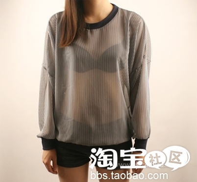 里穿抹胸外搭透视衬衫、T恤、针织衫,欲遮还羞 透视装穿出优雅的性感哦^^