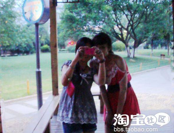 再次臭美一下,姐妹两人齐装上阵,对镜再来一张