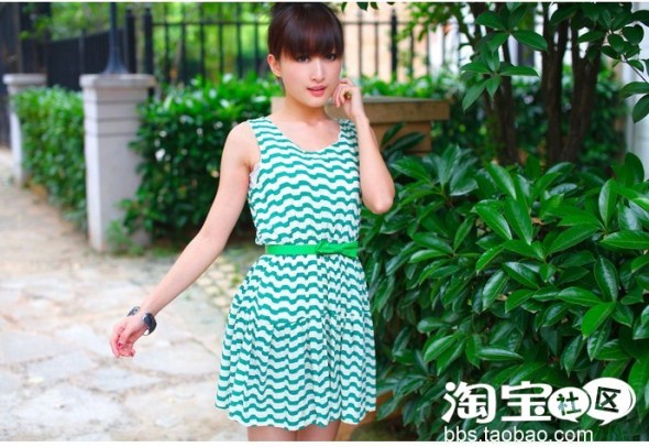 4·清新气质绿色连衣裙这样的裙裙,在沉闷的工作中得到一丝放松,绿色好心情,腰封很重要,他能让原本普通的裙变得修身迷人
