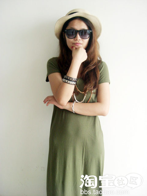 我觉得美女在长裙的基础上搭配些配饰会更好看哦!~