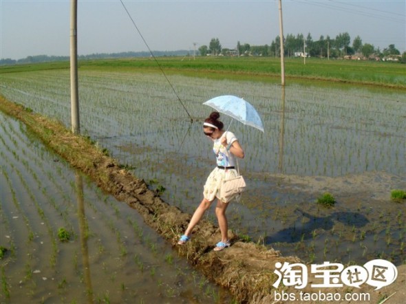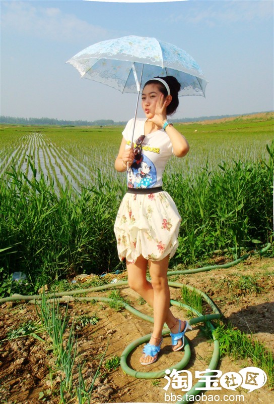 要撑一把粉蓝色的小花伞,配上同色调的夹脚花朵凉鞋才能从头到