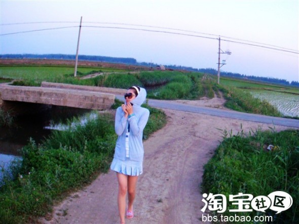 粉蓝的颜色让人即使在烈日下,也不觉得穿着闷热,长袖还可以遮阳。Q觉得很赞~~~稀饭哦~