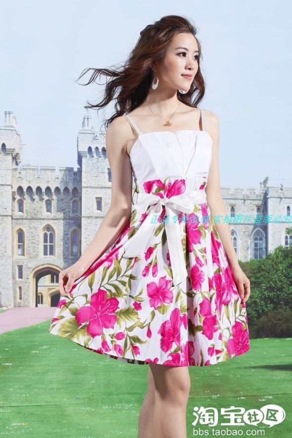 淑女气质修身 纯棉吊带连衣裙 (宝贝连接)