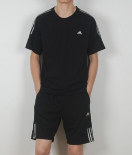 2010特价阿迪达斯ADIDAS运动休闲棉质短袖衣短裤男套装经典2色/88元