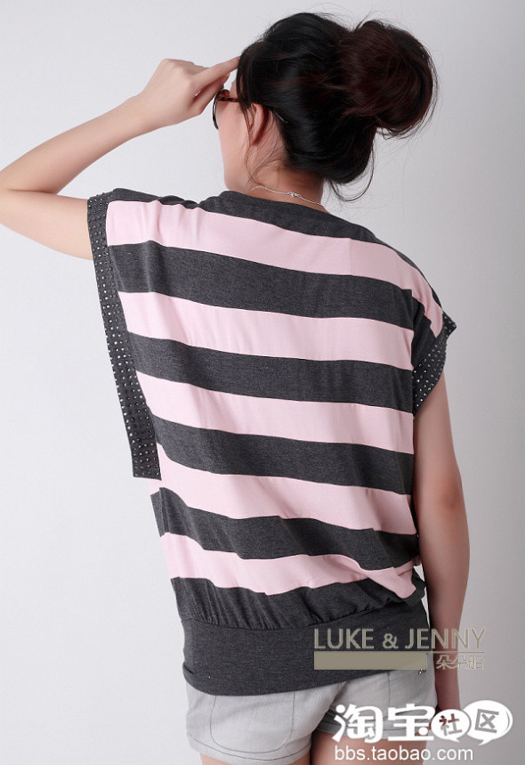 现在是一年之中最炎热的时候了,还是穿T比较舒服,上班,逛街都适宜。很喜欢店家这款烫钻T,其实前不久旅游时在专柜见过,不过没舍得买,偶然在店家看到这宝贝,仔细看了下,颜色版型都和专柜的一样,甚至水钻的颜色也一样。