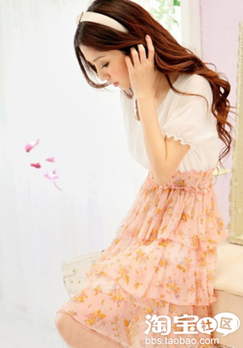 高腰款式的雪纺半裙,Free size的弹性松紧腰围,瞬间提升腰线位置,让双腿倍显纤长,仿真丝的蛋糕层次,轻柔而优雅,搭配白色公主衫,给夏日增加一抹清新。