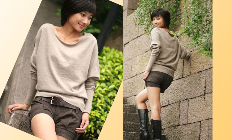 驼色的针织细毛衣最漂亮了,挂脖式的马甲也很喜欢。