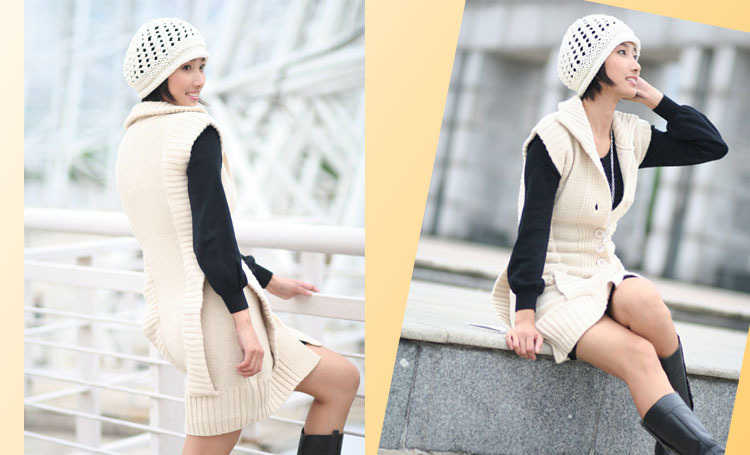 很喜欢的一款无袖开襟针织,配上毛线帽,一下子变得很温暖又可爱。。