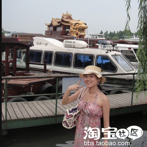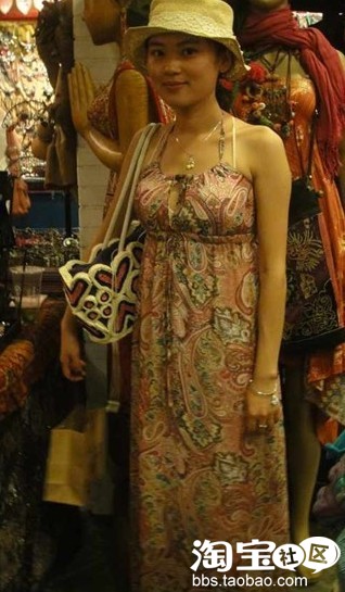 海边玩 再加上 发箍吧~~~~~漂亮~因为是自己拍的。。没办法拍到全身啦。。。哇哈哈。。不好意思啊。。等两周我会穿着这个出游回来再上图哦。。呵呵