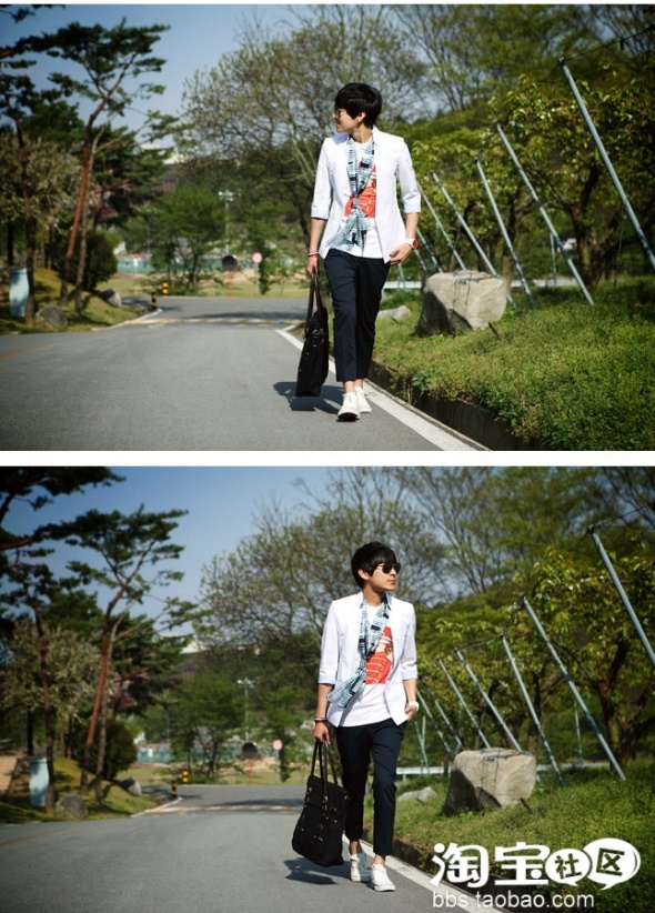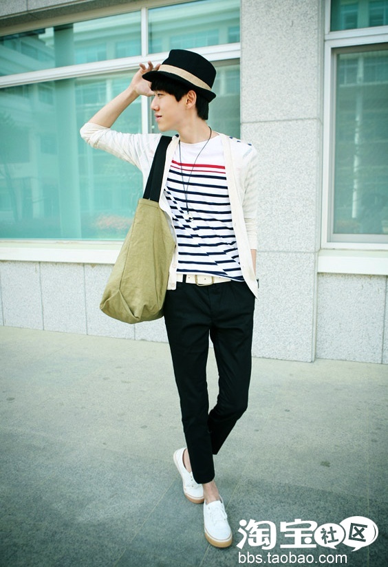 黑色的8分,9分裤是型男的必备品,像上图一样配上浅颜色的上衣非常帅气^^