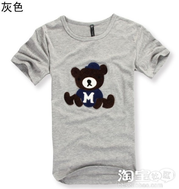 风靡日韩高品质M熊坐态男纯棉短袖T恤 5色入 灰色