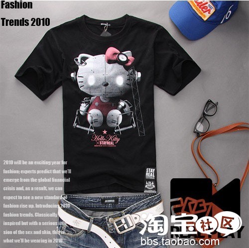 2010新款 holleo KITTY图案 黑色短袖T恤