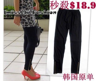 这件百搭首选 时尚金色拉链黑色内搭裤 打底裤