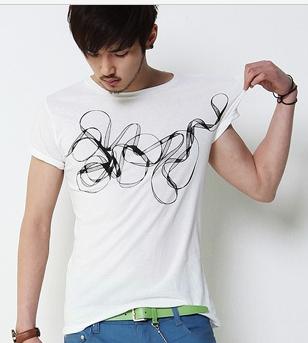 白色简洁的短袖T恤配合不规则的线条图案,很FASHION的感觉