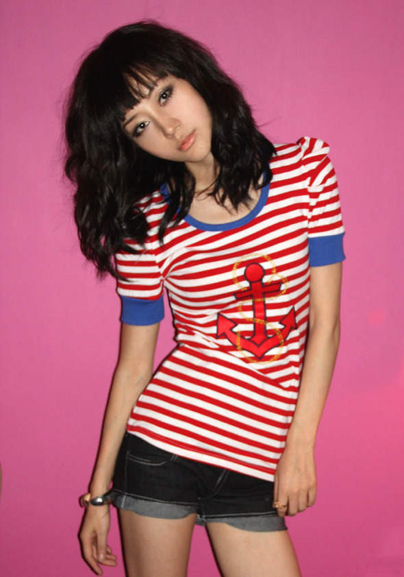 红白条纹色彩活泼冲击力强,非常青春哦!