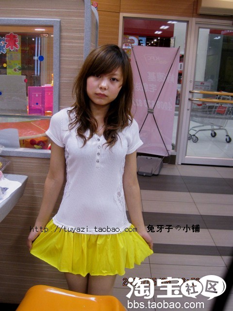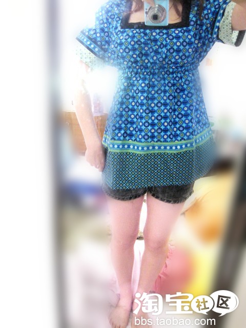 7。长款单色短袖搭配彩色超短裤。个子高矮的MM都可以尝试哦!