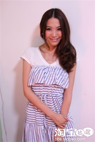 抹胸裙里内搭一件t恤 蓝白的颜色 就有种清爽的感觉 感觉好想出去旅游 或者去海边