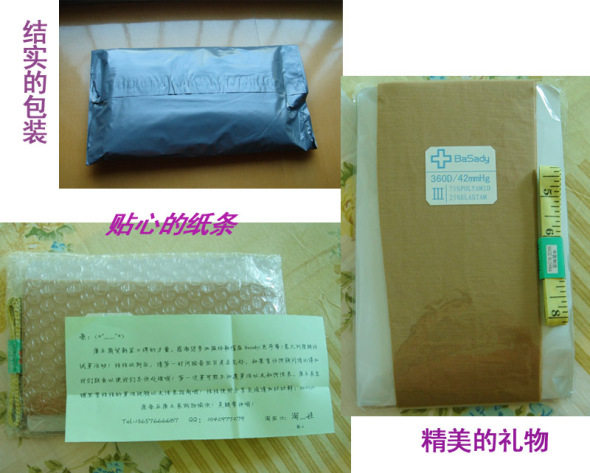 蝴蝶申请试穿的是肉色的L码。掌柜非常贴心的随袜赠送了一条小卷尺,还有一张便条,蝴蝶对此超级感动哦!