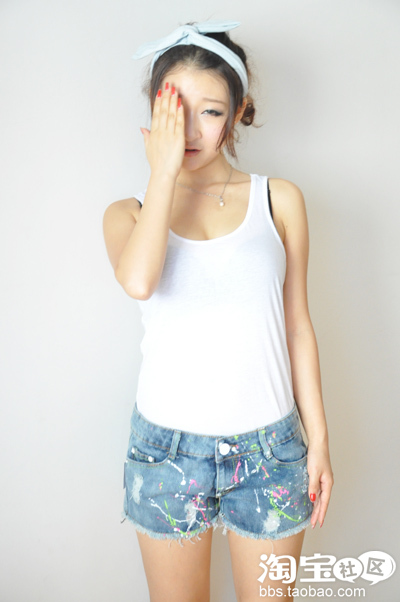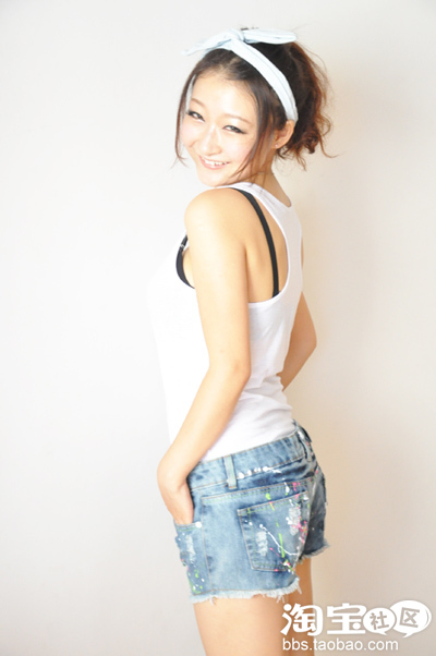 黑色小外套+蝴蝶结抹胸+水洗牛仔小热裤 蝴蝶结抹胸购于淘宝