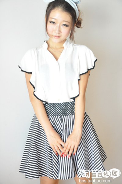 现在统统不要不要哈,有荷叶边修饰小衫帮我们解决了这些问题哈,甜美度UP UP