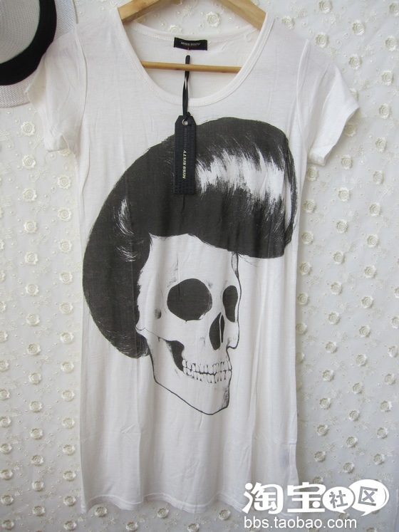 miss sixty 猫王头 可爱骷髅 超垂超滑 时尚性感 丝绵T恤