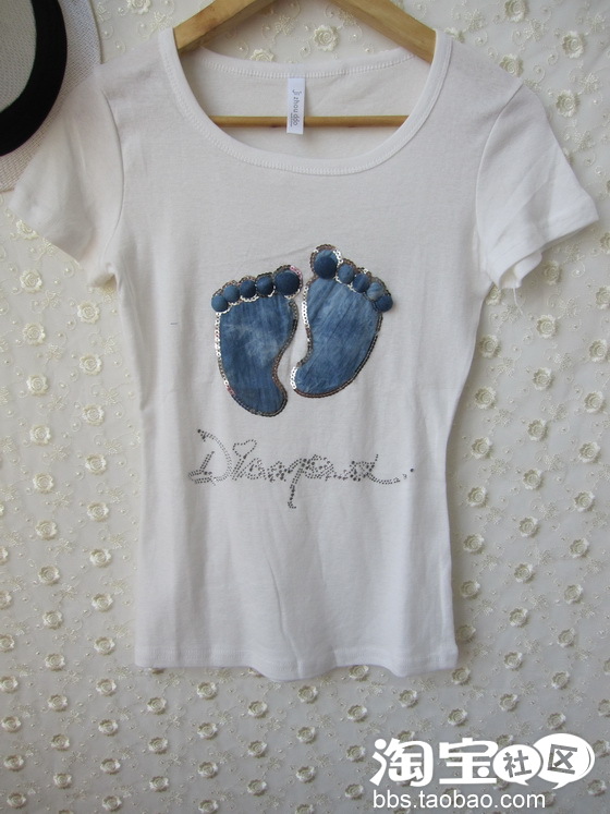 牛仔布 亮珠 可爱脚丫 纯美 T恤