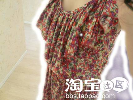 来看看细节吧!胸前的部位是一篇凌乱的褶皱,偶个人觉得,那些荷叶边觉得有扩大胸部的效果,而低领的设计透露着隐约的小性感哦!