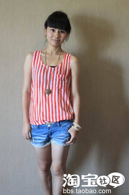 竖条背心的纹路可以让MM的上身显瘦,加上轻薄的面料,夏天的衣柜只能没有它。