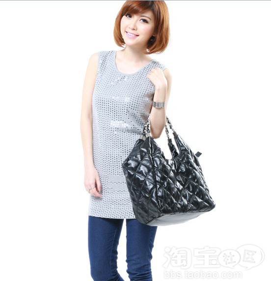 3、缝好两个手提带后,基本上算大功告成了。可以动动脑筋,加点装饰哦~~~我找来了不用的腰带,蛮漂亮的~~~暂时没有找到拉链,缝了几个按扣代替一下吧~