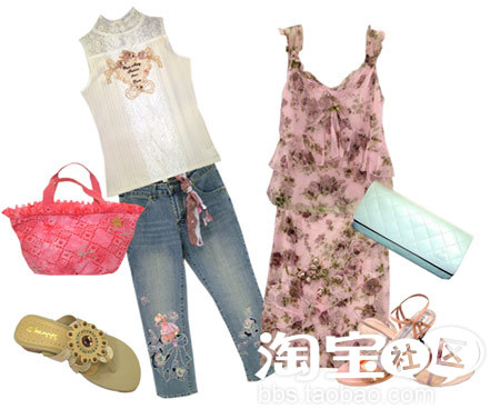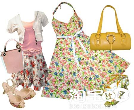 右:碎花的连衣裙最能够把大自然的风情带到水泥钢筋铸造枯燥乏味的城市来,让人有些眼花缭乱的图案因为腰间白色蝴蝶结的点缀而豁然开朗。近似于肚兜的领口设计让甜美的女孩也可以有性感的一面!