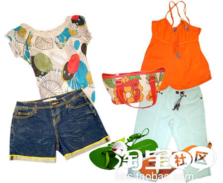 右:闪亮明艳的高腰吊带衫与对比强烈的白色五分裤搭配,激情四溢、充满动感。而简单的民族风格的配饰又平添了几分异域风情。