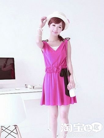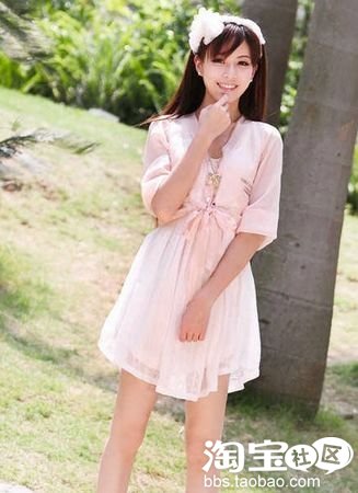 肤色原本就粉嫩的mm穿上同样粉嫩的雪纺连衣裙更加显得粉嫩万分,百分百惹人爱~