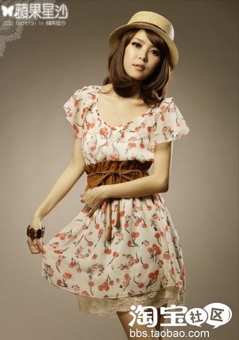 夏日风情;碎花荷叶领洋装连衣裙 苹果花色甜美可爱 蕾丝花边 尽显女人的优雅柔美。