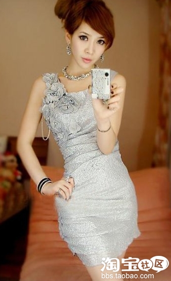 唯美爱恋;镶宝石蕾丝腰带洋裙 尽显女人高贵优雅