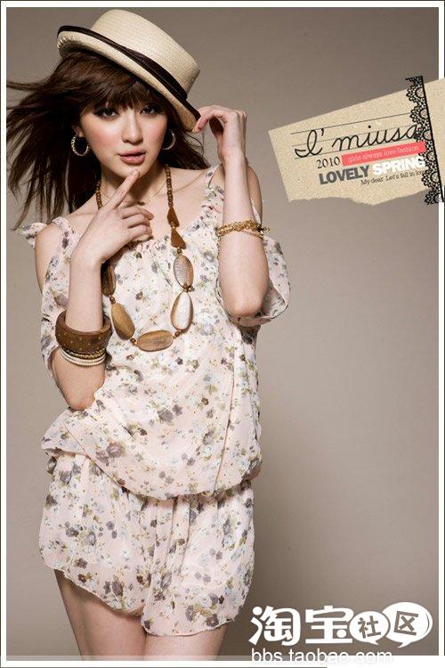 时尚雪纺翠花露肩连衣裙 连身裤 展现迷人香肩
