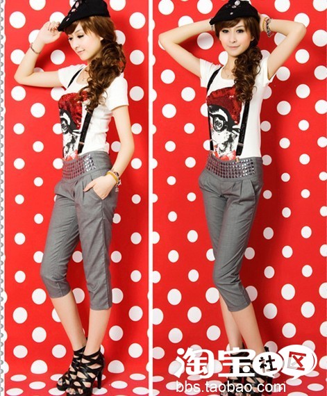 很百搭的一条长裤 纯棉,夏秋都可以穿的噢 绕脖连身露背长裤
