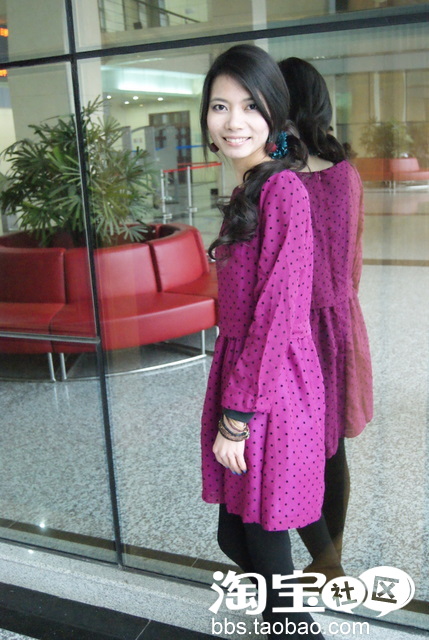 每一个细节都很完美,尤其喜欢艳丽的颜色,很有艺术感,还带有复古的味道,就像旧上海的感觉,上身显曲线。但是小米太瘦,不太明显。哈哈!!